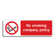 No Smoking Company Policy Signs are used to communicate that smoking is prohibited anywhere on company property as part of the organization’s official rules. They inform employees, visitors, and contractors that smoking is not allowed according to company policy. By banning smoking, the company helps protect everyone from the health risks of second hand smoke and reduces fire hazards. These signs make sure everyone understands the smoking ban applies throughout the workplace, avoiding confusion about where smoking is allowed. All our safety signs are compliant with BS EN ISO 7010 where applicable.
