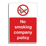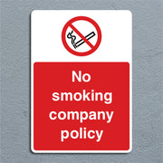 No Smoking Company Policy Signs are used to communicate that smoking is prohibited anywhere on company property as part of the organization’s official rules. They inform employees, visitors, and contractors that smoking is not allowed according to company policy. By banning smoking, the company helps protect everyone from the health risks of second hand smoke and reduces fire hazards. These signs make sure everyone understands the smoking ban applies throughout the workplace, avoiding confusion about where smoking is allowed. All our safety signs are compliant with BS EN ISO 7010 where applicable.