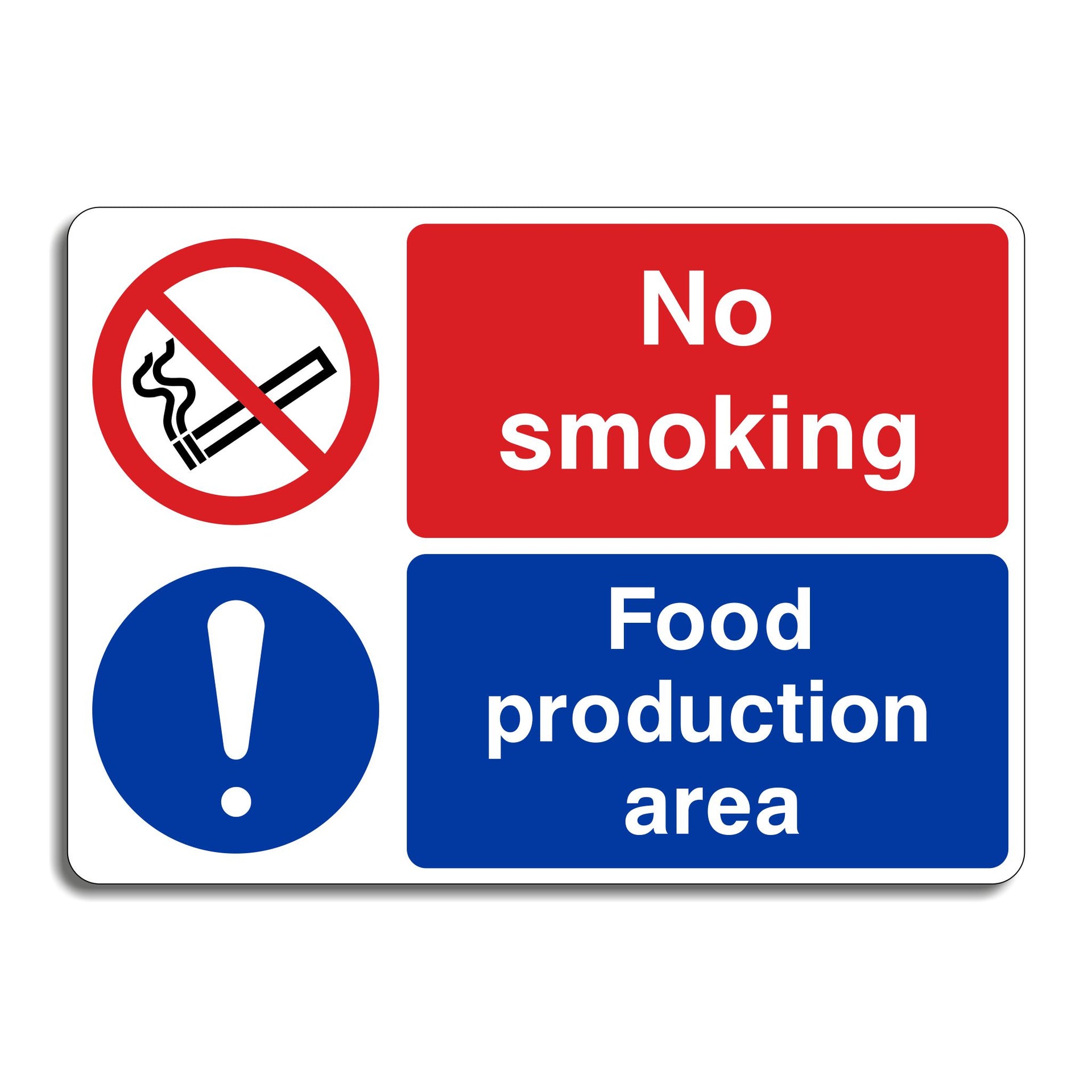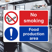 No Smoking Food Production Area Signs are used to clearly communicate that smoking is strictly prohibited in areas where food is processed, prepared, or handled. Smoking introduces contaminants like ash, smoke particles, and harmful chemicals that can compromise food safety. The sign helps protect food products from contamination. All our safety signs are compliant with BS EN ISO 7010 where applicable.