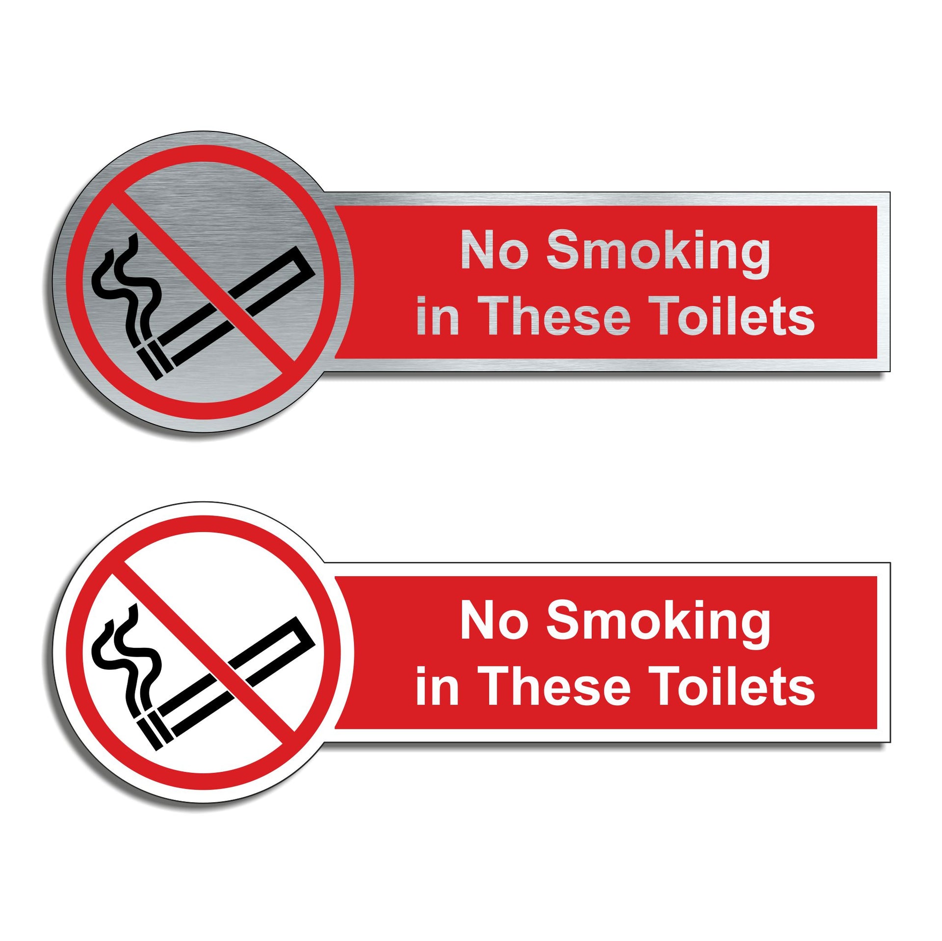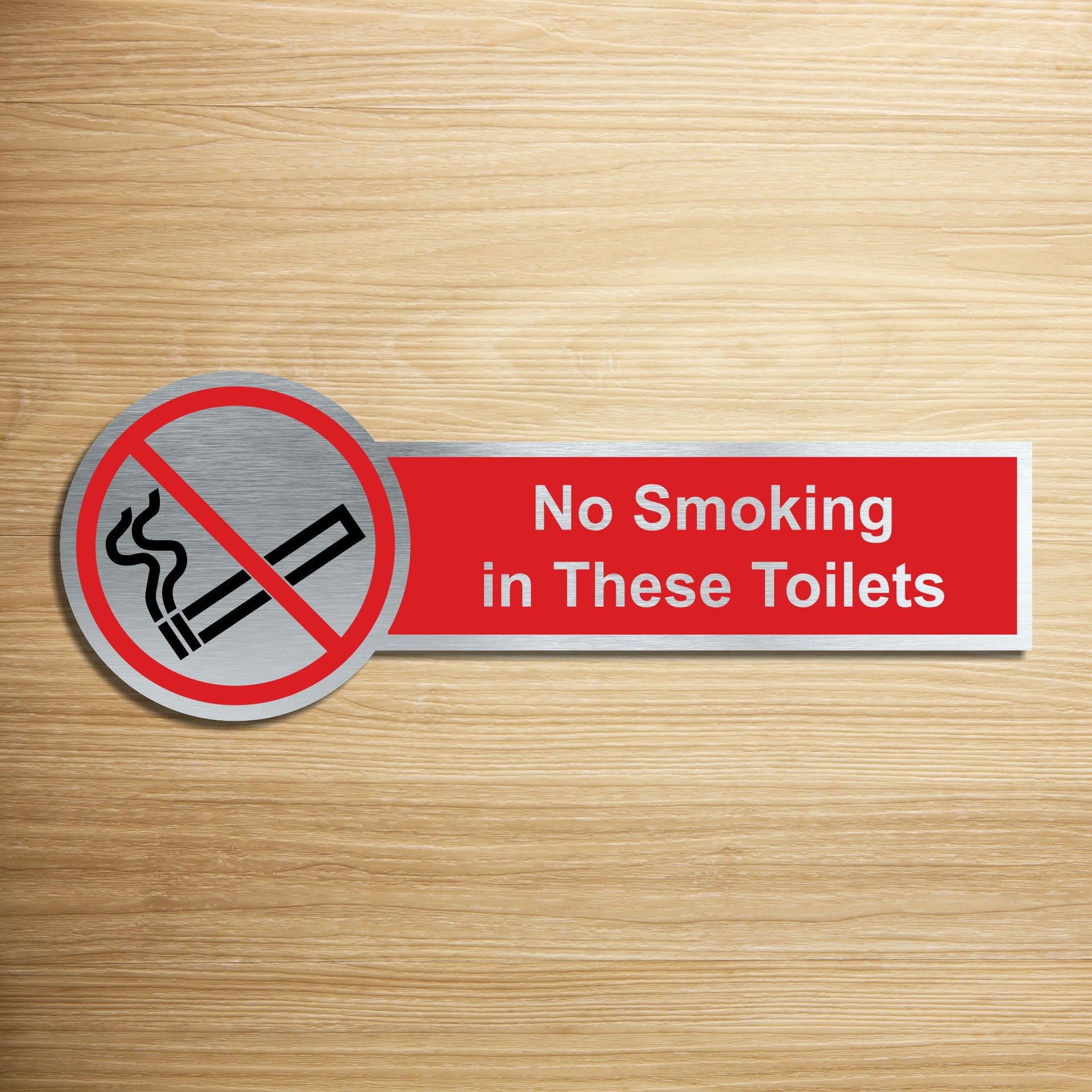 Our brushed aluminum No Smoking Signs are known for their contemporary appeal, giving a high-end look that is both sleek as well as being practical. The distinctive brushed aluminium texture creates a modern aesthetic that is perfect for businesses or organisations aiming to convey a sense of style and professionalism. The textured metallic finish adds a touch of luxury, making brushed aluminum door signs a popular choice for any location. Manufactured by us here in the UK using a high quality 3mm brushed silver aluminium composite sheet each sign is suitable for either internal or external use. Our Crest range of signs are precision cut to size and shape using one of our flat bed CNC routers and is then digitally printed directly to the surface using the very latest UV printing technology. This Crest door sign is also available in a 3mm bright white aluminium composite finish. These signs are supplied with self adhesive pads to allow for easy installation. We also offer a range of stylish screw fixings that are designed to compliment the finish of each sign. Due to the large selection of different sign designs to avoid drill holes in the actual image or text area we do not supply these signs with any pre-drilled holes.