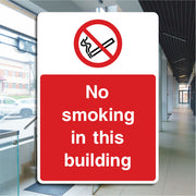 No Smoking In This Building Signs are used to clearly inform everyone that smoking is strictly prohibited inside the building. They help prevent exposure to harmful second hand smoke for all occupants, promoting a healthier indoor environment. Smoking indoors can pose fire hazards, especially in buildings with flammable materials or sensitive equipment. The signs help reduce these risks. All our safety signs are compliant with BS EN ISO 7010 where applicable.