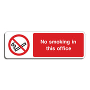No Smoking In This Office Signs are used to ensure a smoke-free indoor environment for health, safety, and compliance with the law. The primary aim is to protect employees and visitors from the harmful effects of second-hand smoke, which is a known cause of various diseases. By prohibiting smoking indoors, the sign helps maintain good indoor air quality. All our safety signs are compliant with BS EN ISO 7010 where applicable.