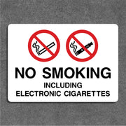 No Smoking Including Electronic Cigarettes Signs are used to clearly communicate that both traditional smoking and the use of electronic cigarettes are prohibited in the area. By specifically mentioning electronic cigarettes, the sign ensures there is no misunderstanding, neither smoking nor vaping is allowed. Both tobacco smoke and e-cigarette vapor can negatively affect indoor air quality and pose health risks, especially in enclosed or public spaces. All our safety signs are compliant with BS EN ISO 7010 where applicable.