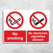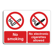 No Smoking No Electronic Cigarettes Allowed Signs are used to clearly communicate that both traditional smoking and the use of electronic cigarettes are strictly prohibited in the designated area. By explicitly stating that both smoking and electronic cigarettes are not allowed, the sign removes any confusion and ensures all forms of smoking and vaping are covered. Both tobacco smoke and e-cigarette vapor can release harmful substances into the air. The sign helps maintain a clean, healthy environment for everyone. All our safety signs are compliant with BS EN ISO 7010 where applicable.