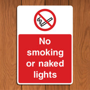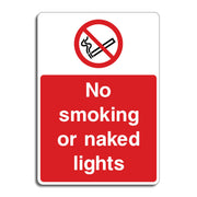 No Smoking or Naked Lights Signs are used to strictly prohibit both smoking and the use of open flames or sparks in a specific area. In places where flammable gases, vapours, liquids, or combustible dust are present, both smoking and any open flames (naked lights) can ignite a fire or cause an explosion. The sign warns against these risks. By forbidding smoking and open flames, these signs help safeguard workers, visitors, and the public from potential accidents and harmful exposure. All our safety signs are compliant with BS EN ISO 7010 where applicable.