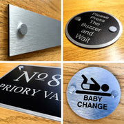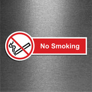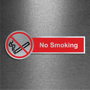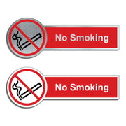 Our brushed aluminum No Smoking Signs are known for their contemporary appeal, giving a high-end look that is both sleek as well as being practical. The distinctive brushed aluminium texture creates a modern aesthetic that is perfect for businesses or organisations aiming to convey a sense of style and professionalism. The textured metallic finish adds a touch of luxury, making brushed aluminum door signs a popular choice for any location. Manufactured by us here in the UK using a high quality 3mm brushed silver aluminium composite sheet each sign is suitable for either internal or external use. Our Crest range of signs are precision cut to size and shape using one of our flat bed CNC routers and is then digitally printed directly to the surface using the very latest UV printing technology. This Crest door sign is also available in a 3mm bright white aluminium composite finish. These signs are supplied with self adhesive pads to allow for easy installation. We also offer a range of stylish screw fixings that are designed to compliment the finish of each sign. Due to the large selection of different sign designs to avoid drill holes in the actual image or text area we do not supply these signs with any pre-drilled holes.