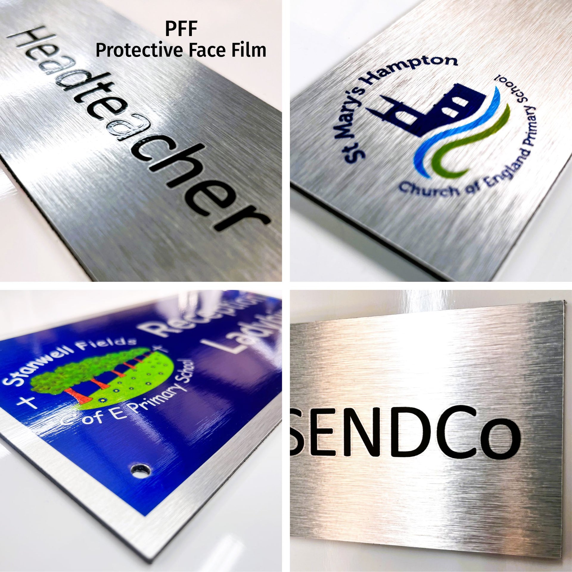 Now Available... PFF is a clear protective face film that can be applied to our aluminium composite signs during the manufacturing process. PFF is a high quality polymeric clear film that gives your signs even greater protection against the long term effects of UV exposure, damage from spray paints, solvent and water based marker pens, airborne salt, sea spray and everyday dirt and road grime.