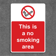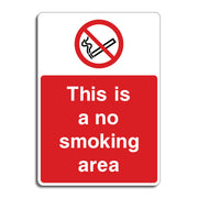 This Is A No Smoking Area Signs serve a clear and essential safety, health, and legal purpose by informing people that smoking is prohibited in the designated area. In areas where flammable or combustible materials are present (like paper, textiles, chemicals, or gases), smoking poses a major fire hazard. These signs help prevent accidental fires. In public spaces, workplaces, healthcare facilities, and schools, no smoking signs help protect people from the harmful effects of second hand smoke, which is a known health risk.
