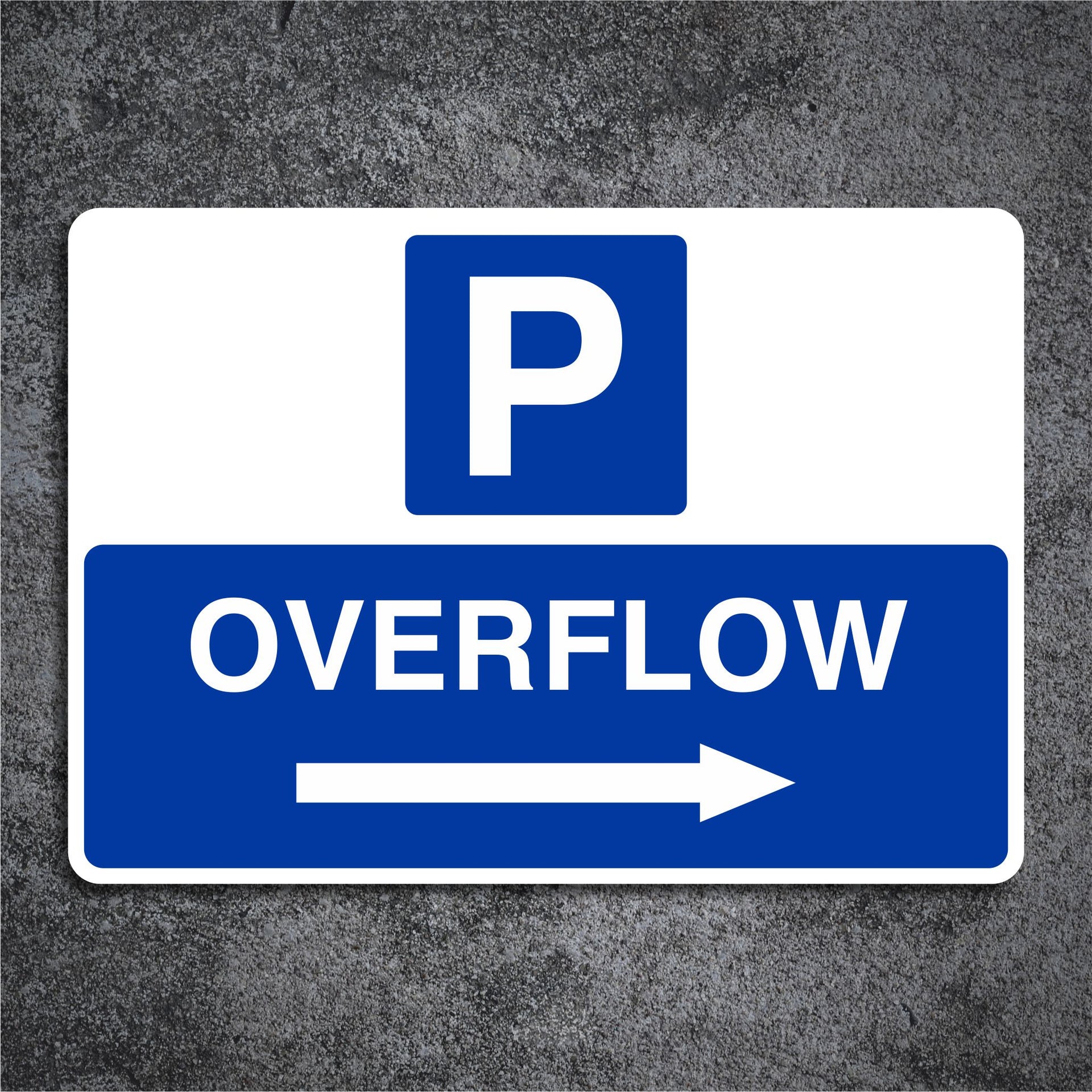 Over Flow Parking Signs with a Right Pointing Directional Arrow are designed to direct drivers to additional or backup parking areas when primary parking lots are full, with the arrow indicating the correct direction to follow. The primary purpose of these signs is to manage traffic flow efficiently, reduce congestion, and ensure that visitors can quickly find alternative parking without unnecessary delays or confusion. All our safety signs are compliant with BS EN ISO 7010 where applicable.