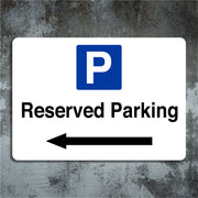Reserved Parking Sign with a Left Pointing Directional Arrow