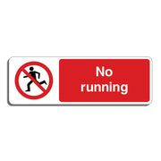 No Running Signs are used to instruct individuals not to run in a specific area. Running can increase the risk of slips, trips, or collisions, especially in areas with wet floors, stairs, or limited visibility. In places like schools, hospitals, swimming pools, or train stations, running may pose a danger to both the runner and others nearby. All our safety signs are compliant with BS EN ISO 7010 where applicable.