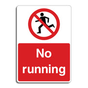 No Running Signs are used to prohibit running in specific areas to maintain safety and order. Running can lead to slips, trips, or collisions, especially in places with hard floors, narrow walkways, or heavy foot traffic (e.g., hospitals, schools, swimming pools, or retail stores). These signs help to safeguard children, the elderly, or individuals with mobility issues from being accidentally knocked over or injured. All our safety signs are compliant with BS EN ISO 7010 where applicable.