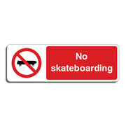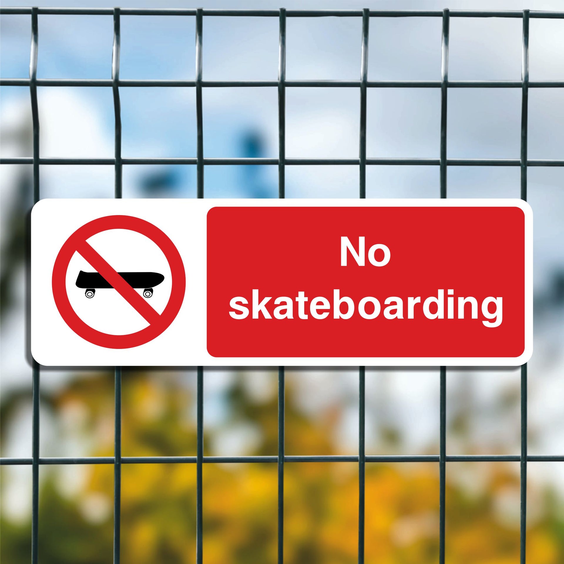 No Skateboarding Signs are used to prohibit the use of skateboards in a specific area. These signs are used to prevent accidents or injuries to skateboarders and pedestrians, especially in crowded or uneven areas. Skateboarding can cause damage to surfaces like benches, railings, pavements, or walls, particularly in public or private properties not designed for such use. All our safety signs are compliant with BS EN ISO 7010 where applicable.