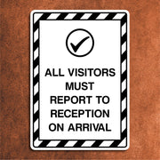 All Visitors Must Report To Reception on Arrival Sign