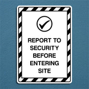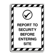 Report to Security Before Entering Site Signs are used to inform and instruct all visitors, contractors, or non-regular personnel that they must check in with security staff before entering the premises. They help control who enters the site, preventing unauthorized access and reducing potential security risks. By requiring visitors to report to security, the site can maintain accurate records of who is on the premises and for what purpose. All our safety signs are compliant with BS EN ISO 7010 where applicable.