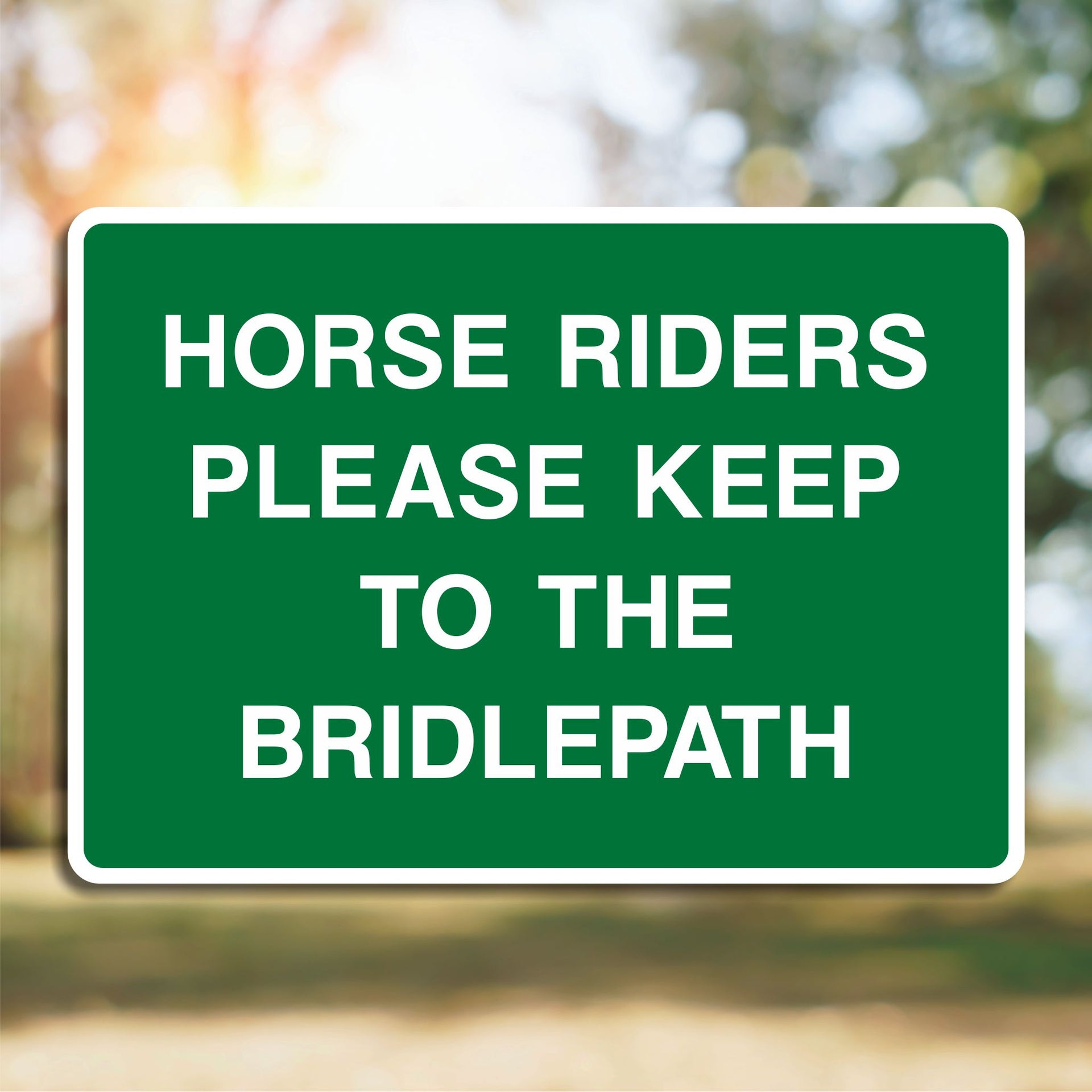 Horse Riders Please Keep To The Bridlepath Signs are to guide and remind equestrians to stay on designated bridleways that are legally and safely meant for horse riding. Riding off the bridlepath can damage fragile vegetation, disturb wildlife, and contribute to erosion. Bridlepaths are designed to be safe for horses and riders. Going off-path may lead to dangerous terrain, narrow spaces, or areas with obstacles. All our safety signs are compliant with BS EN ISO 7010 where applicable.
