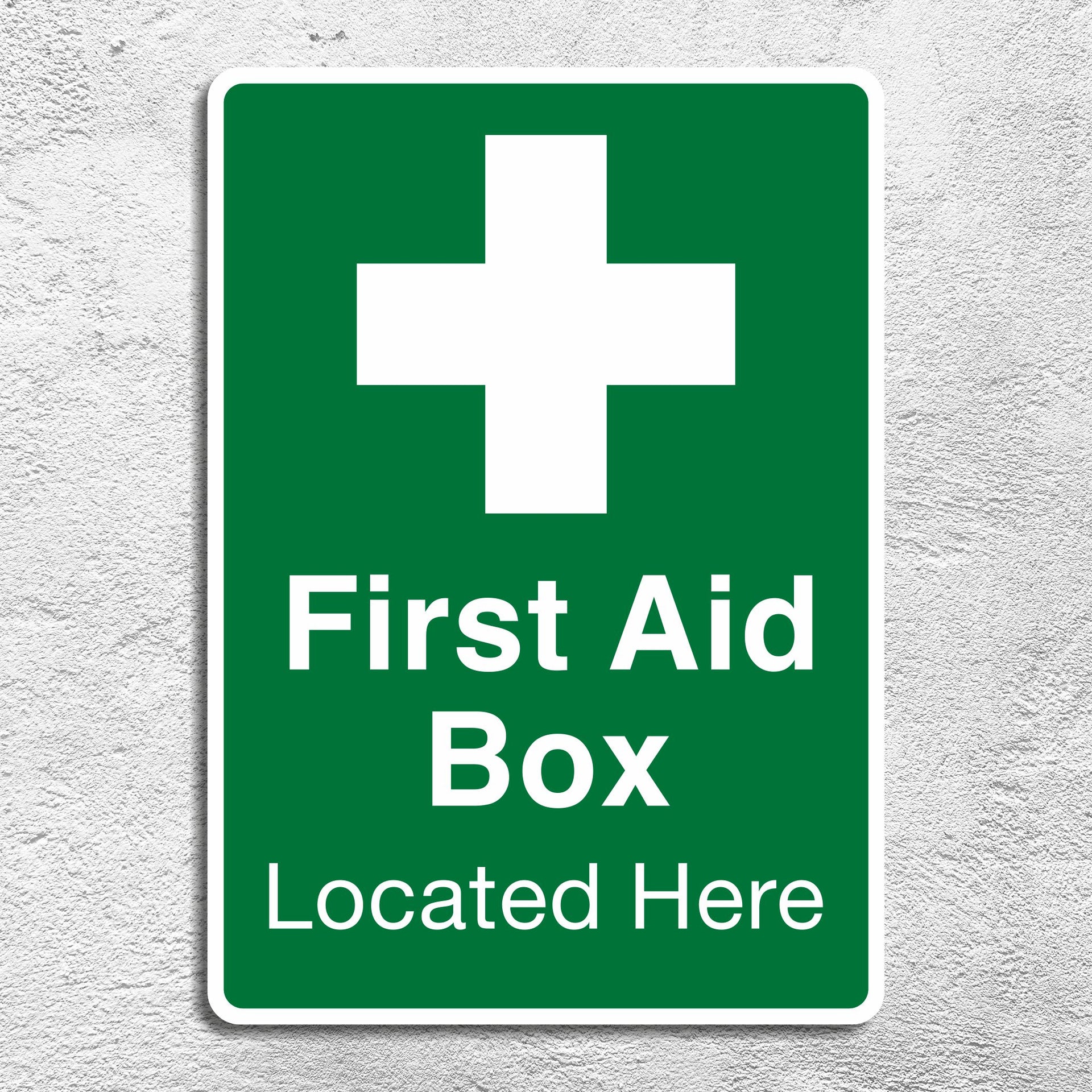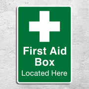 First Aid Box Located Here signs are designed to clearly indicate the location of first aid supplies, ensuring that they can be quickly and easily found in case of an emergency. These signs play a critical role in promoting workplace or public safety by helping people respond promptly to injuries or medical situations. Typically placed in visible, accessible areas, they guide staff, visitors, or the general public to essential medical resources, potentially reducing the severity of injuries and improving response times during accidents.