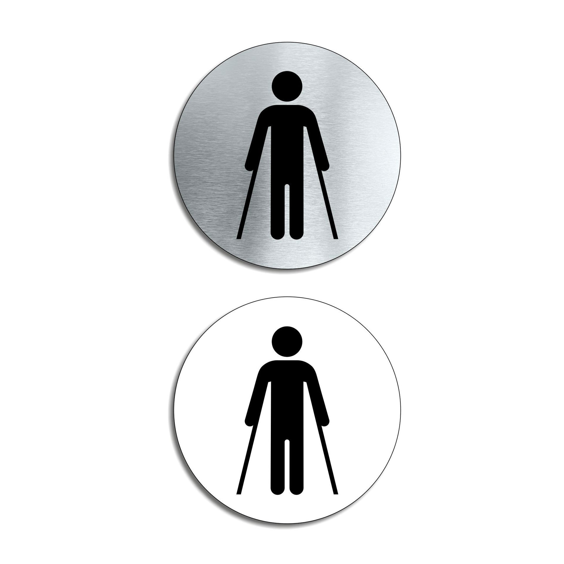 Enhance the look of your doors with our circular brushed aluminium Male Ambulant Door Signs. Brushed silver aluminum door signs are known for their contemporary appeal, giving a high-end look that is both sleek as well as being practical. The distinctive brushed aluminium texture creates a modern aesthetic that is perfect for businesses or organisations aiming to convey a sense of style and professionalism. The textured metallic finish adds a touch of luxury, making brushed aluminum door signs a popular choice for any location. Manufactured by us here in the UK using a high quality 3mm brushed silver aluminium composite sheet each door sign is suitable for either internal or external use. Our door signs are precision cut to size and shape using one of our flat bed CNC routers and is then digitally printed directly to the surface using the very latest UV printing technology. This door sign is also available in a 3mm bright white aluminium composite finish. These door signs are supplied with self adhesive pads to allow for easy installation. We also offer a range of stylish screw fixings that are designed to compliment the finish of each sign. Due to the large selection of different sign designs to avoid drill holes in the actual image or text area we do not supply these signs with any pre-drilled holes.