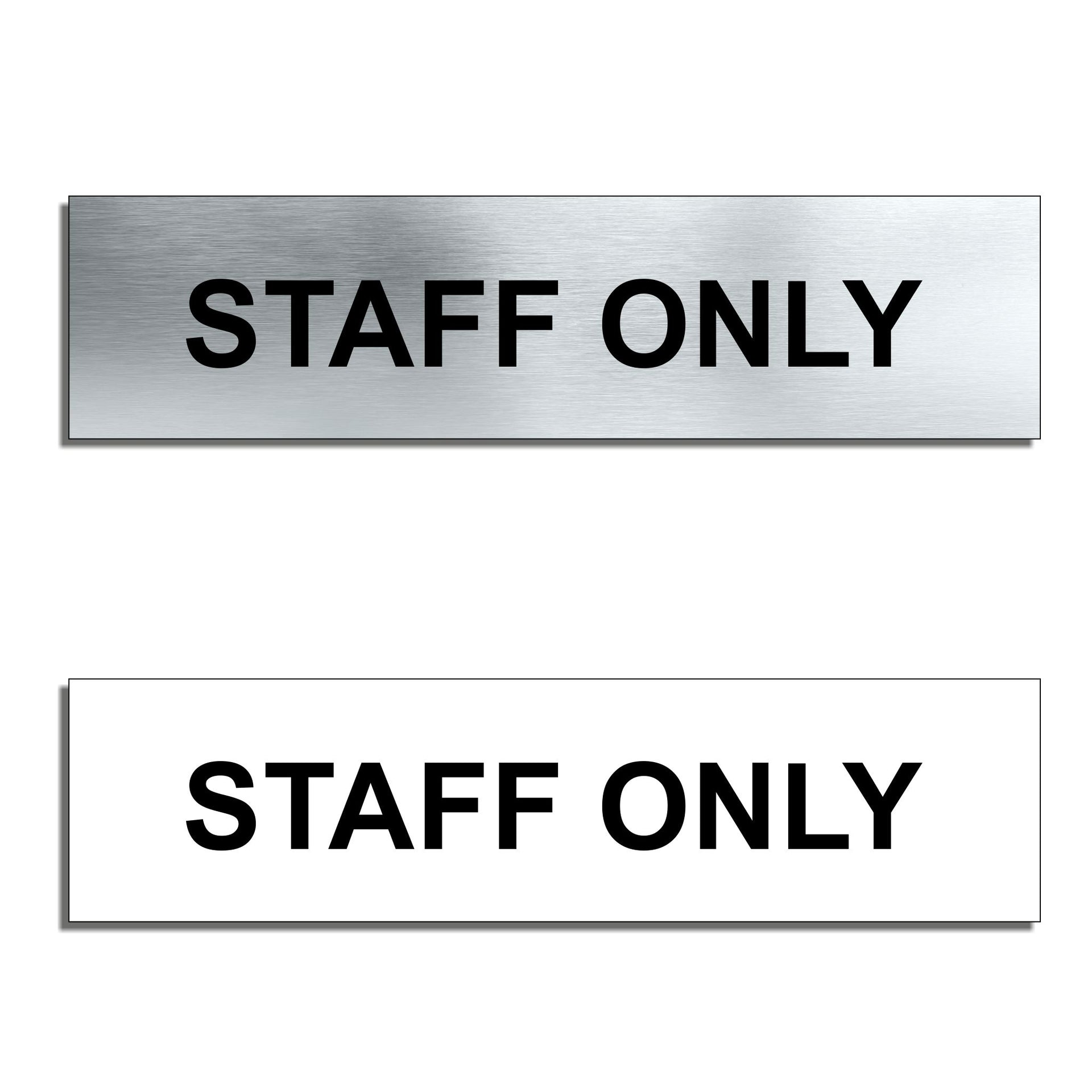 Enhance the look of your doors with our brushed aluminium Staff Only Door Signs. Brushed silver aluminum door signs are known for their contemporary appeal, giving a high-end look that is both sleek as well as being practical. The distinctive brushed aluminium texture creates a modern aesthetic that is perfect for businesses or organisations aiming to convey a sense of style and professionalism. The textured metallic finish adds a touch of luxury, making brushed aluminum door signs a popular choice for any location. Manufactured by us here in the UK using a high quality 3mm brushed silver aluminium composite sheet each door sign is suitable for either internal or external use. Our door signs are precision cut to size and shape using one of our flat bed CNC routers and is then digitally printed directly to the surface using the very latest UV printing technology. This door sign is also available in a 3mm bright white aluminium composite finish. These door signs are supplied with self adhesive pads to allow for easy installation. We also offer a range of stylish screw fixings that are designed to compliment the finish of each sign. Due to the large selection of different sign designs to avoid drill holes in the actual image or text area we do not supply these signs with any pre-drilled holes.