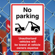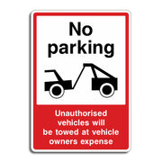 No Parking Unauthorised Vehicles Will Be Towed At Vehicle Owners Expense Sign