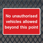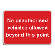 No Unauthorised Vehicles Allowed Beyond This Point Sign