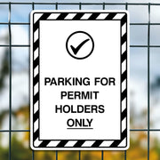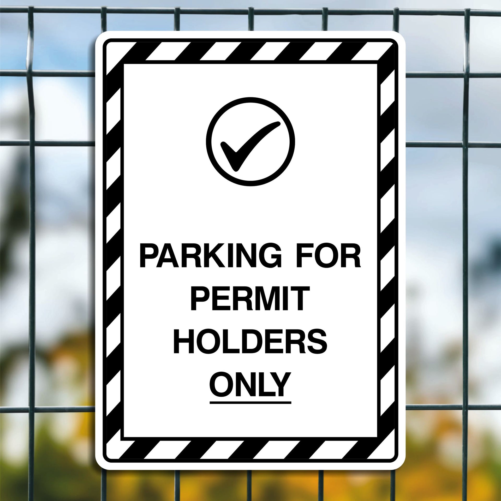 Parking for Permit Holders Only Signs are used to indicate that only vehicles displaying a valid permit are allowed to park in a specific area. They ensure that parking spaces are reserved for individuals who have been granted permission, such as residents, employees, or students, with a valid permit. These signs help deter the general public or unapproved users from occupying limited or priority parking spaces. All our safety signs are compliant with BS EN ISO 7010 where applicable.