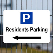 Residents Parking Sign with a Left Pointing Directional Arrow