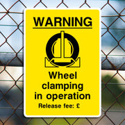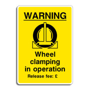 Warning Wheel Clamping in Operation Release Fee Sign