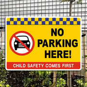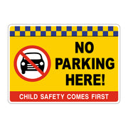 No Parking Here Child Safety Comes First Signs are used to clearly communicate that parking in the designated area is prohibited in order to protect the safety of children. Commonly placed near school gates, playground entrances, and pedestrian crossings, the sign emphasizes that the well-being of children takes priority over driver convenience. This sign is part of a colourful range of school traffic hazard signs that are designed for added impact for use near schools. All our safety signs are compliant with BS EN ISO 7010 where applicable.