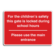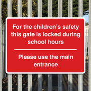 For The Children's Safety This Gate Is Locked During School Hours Please Use The Main Entrance Sign