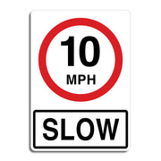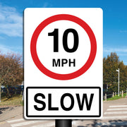 10mph Slow Signs are used to alert drivers to reduce their speed to a very low limit, typically in areas with high pedestrian activity such as school zones, parking lots, or residential areas. These signs serve as a visual reminder to drive carefully and attentively, helping to prevent accidents and ensure the safety of children, staff, and other pedestrians. All our safety signs are compliant with BS EN ISO 7010 where applicable.