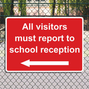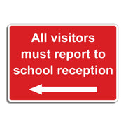 All Visitors Must Report To School Reception Sign with Left Pointing Directional Arrow