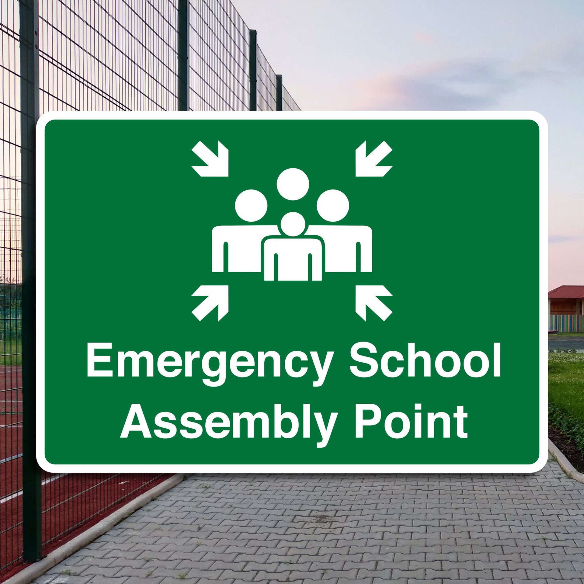 Emergency School Assembly Point Signs are used to clearly identify the designated safe location where students, staff, and visitors must gather in the event of an emergency, such as a fire or evacuation. These signs play a critical role in ensuring an organized and efficient response during emergencies by guiding people to a predetermined area where headcounts can be taken and further instructions given. All our safety signs are compliant with BS EN ISO 7010 where applicable.