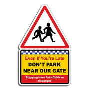 Even If You're Late Don't Park Near Our Gate Stopping Here Puts Children In Danger Sign
