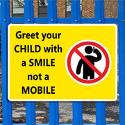 Greet Your Child With a Smile, Not a Mobile Signs are intended to encourage parents and caregivers to be fully present and emotionally available when picking up their children, particularly at school gates or nurseries. The signs serve as a gentle reminder to put away mobile phones and prioritize face-to-face interaction. All our safety signs are compliant with BS EN ISO 7010 where applicable.