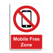 Mobile Free Zone Signs are used to clearly indicate that the use of mobile phones is not allowed in a specific area to maintain safety, privacy, or minimize distractions. These signs are often placed in environments such as hospitals, classrooms, confidential work spaces, or areas with sensitive equipment, where phone use could interfere with operations, compromise privacy, or disrupt focus. All our safety signs are compliant with BS EN ISO 7010 where applicable.