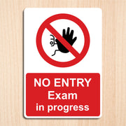 No Entry Exam in Progress Signs are used to prevent interruptions and maintain a quiet, controlled environment during examinations. These signs inform others that a formal assessment is taking place and that entry into the area is restricted to authorized personnel only. By minimizing noise and foot traffic, the signs help ensure that students can concentrate fully and that the integrity of the exam is preserved. All our safety signs are compliant with BS EN ISO 7010 where applicable.