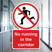 No Running in the Corridor Signs are used to promote a safe and orderly environment within the school by reminding students to walk rather than run in hallways. Running in corridors can lead to accidents such as slips, trips, and collisions with other students or staff, potentially causing injury. These signs serve as a visual reminder to encourage responsible behavior, reduce disruptions, and maintain a calm atmosphere, particularly during busy transition times between classes.