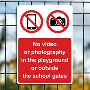No Video Or Photography In The Playground Or Outside The School Gates Sign