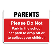 Parents Please Do Not Park In The School Car Park To Drop Off Or To Collect Your Children Sign