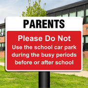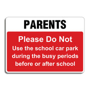 Parents Please Do Not Use The School Car Park During The Busy Periods Before Or After School Sign