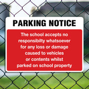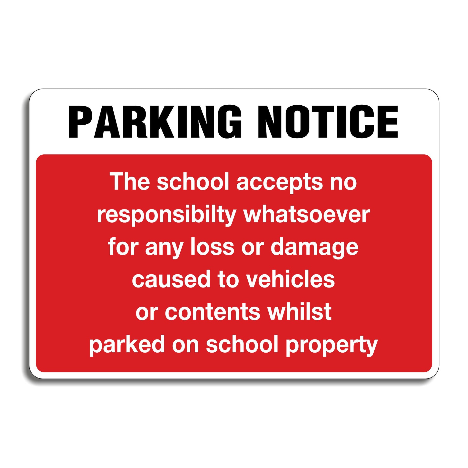 Parking Notice The School Accepts No Responsibility Whatsoever For Any Loss Or Damage Caused To Vehicles Sign