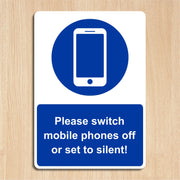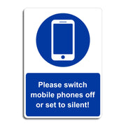Please Switch Mobile Phones Off or Set to Silent Signs are used to reduce noise and prevent disruptions in environments where concentration, respect, or quiet is important, such as classrooms, meetings, libraries, theaters, or medical facilities. These signs serve as polite reminders for individuals to manage their mobile phone settings in a way that minimizes interruptions to others. All our safety signs are compliant with BS EN ISO 7010 where applicable.