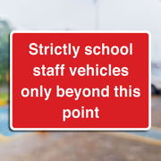 Strictly School Staff Vehicles Only Beyond This Point Sign