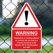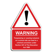 Warning Trespassing Or Causing Nuisance On A School Site Can Lead To Criminal Conviction Sign - SCH0181