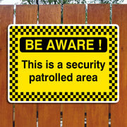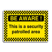 Be Aware! This Is A Security Patrolled Area Signs are displayed to alert people that the premises are regularly monitored by security personnel. The sign warns potential trespassers, vandals, or criminals that security patrols actively monitor the area, discouraging illegal or suspicious behaviour. It reassures employees, visitors, and residents that measures are in place to protect them and the property. All our safety signs are compliant with BS EN ISO 7010 where applicable.