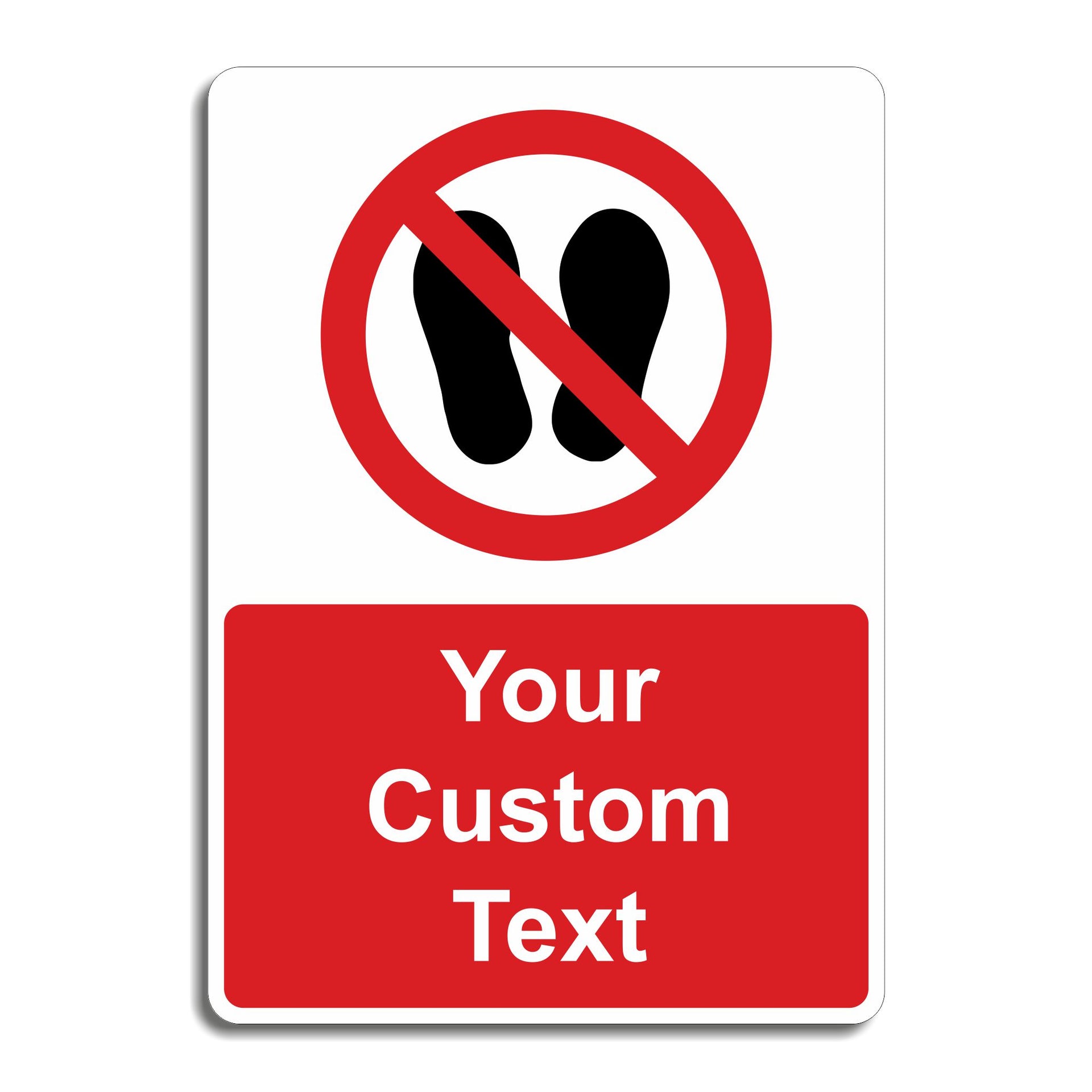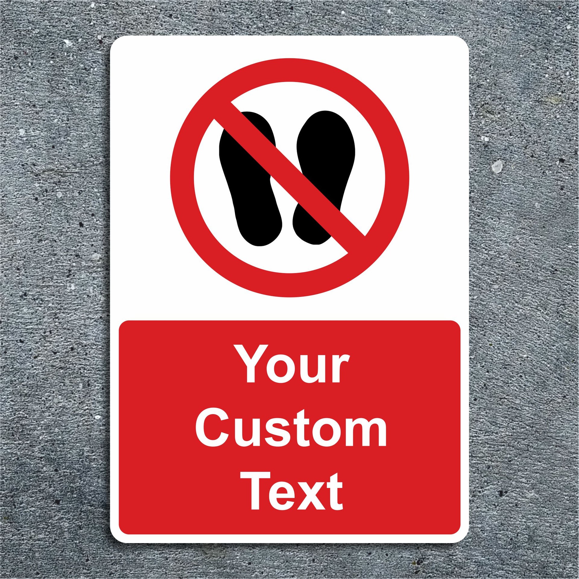 Are you looking for a new do not walk or a do not stand here sign but can't find exactly what you want? We offer a range of custom safety signs available in PVC Vinyl, Rigid Plastic and Aluminium Composite perfect for workplace safety signage. Use our Custom Sign templates to create your perfect sign for just about any location or message! Choose your size, material and then tell us your text to create the perfect sign. Red backgrounds with white text like this custom sign blank are ideal for any custom general prohibition signs that you would like to create ready to display in any location.
