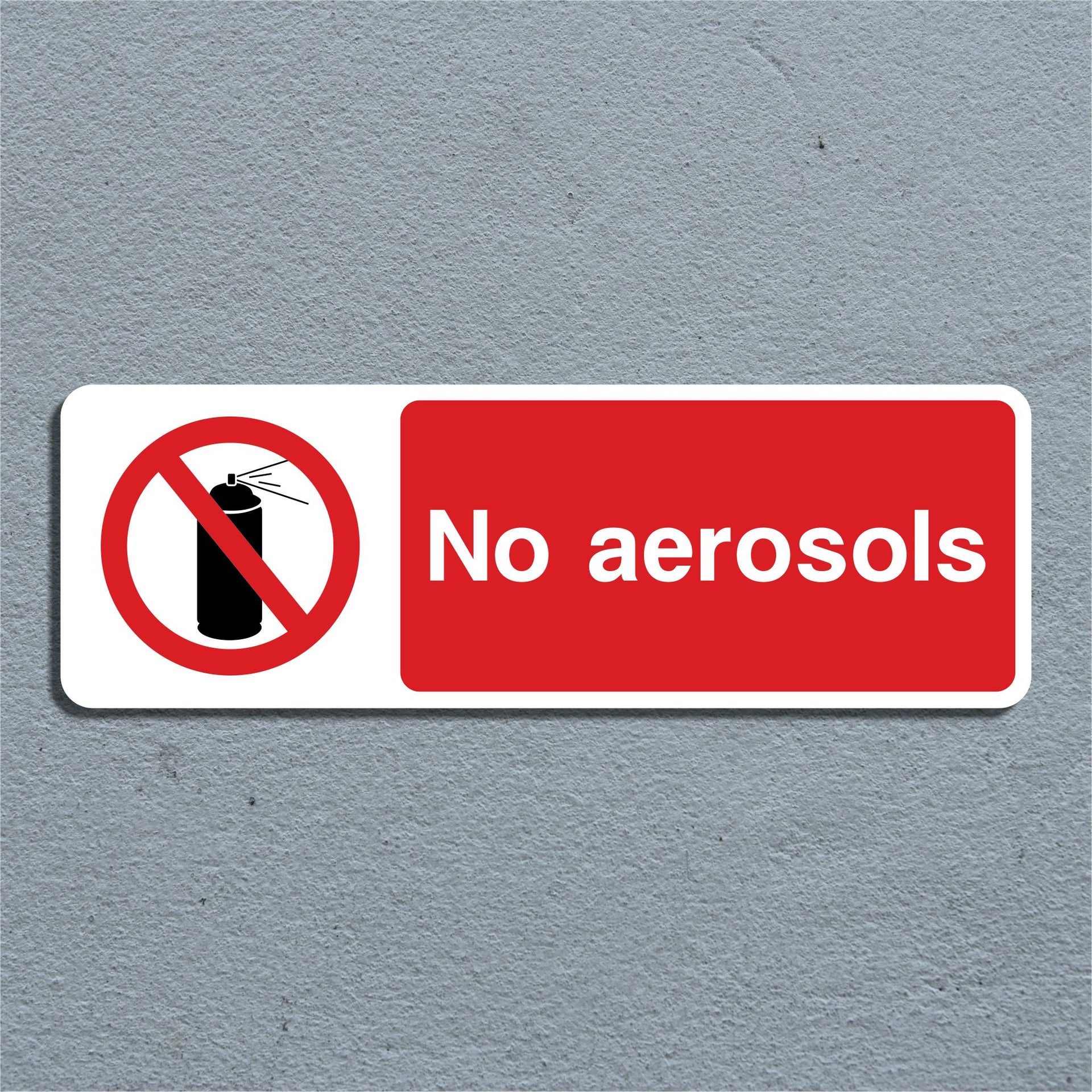 No Aerosols Signs are used to prohibit the use or possession of aerosol sprays in specific areas due to safety, health, or environmental concerns. Aerosols are often flammable and can pose serious fire or explosion hazards, especially in areas with open flames, heat sources, or machinery. Spray products can release chemicals that may cause respiratory issues, allergic reactions, or skin irritation, particularly in enclosed or poorly ventilated spaces. All our safety signs are compliant with BS EN ISO 7010 where applicable.