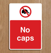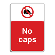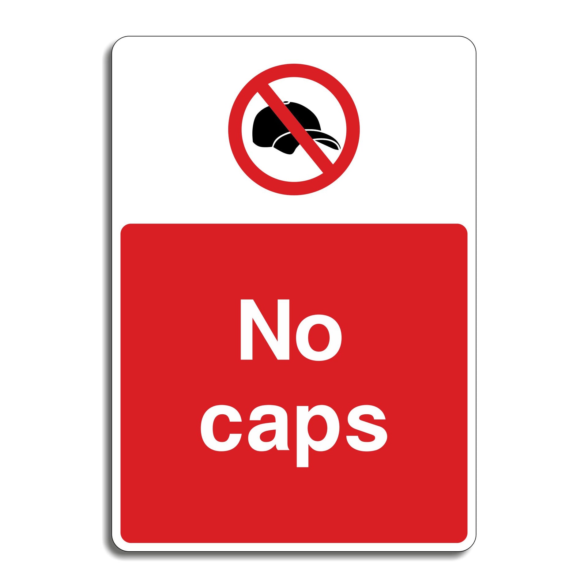 No Caps Signs are used to prohibit the wearing of caps or hats in specific areas. Caps can obscure parts of the face, making it difficult for security cameras or staff to identify individuals. Banning caps helps maintain clear visibility for monitoring and identification. In some settings, such as retail stores, banks, or public transport, caps are associated with attempts to conceal identity during shoplifting or other misconduct. The ban can help deter suspicious behaviour. All our safety signs are compliant with BS EN ISO 7010 where applicable.