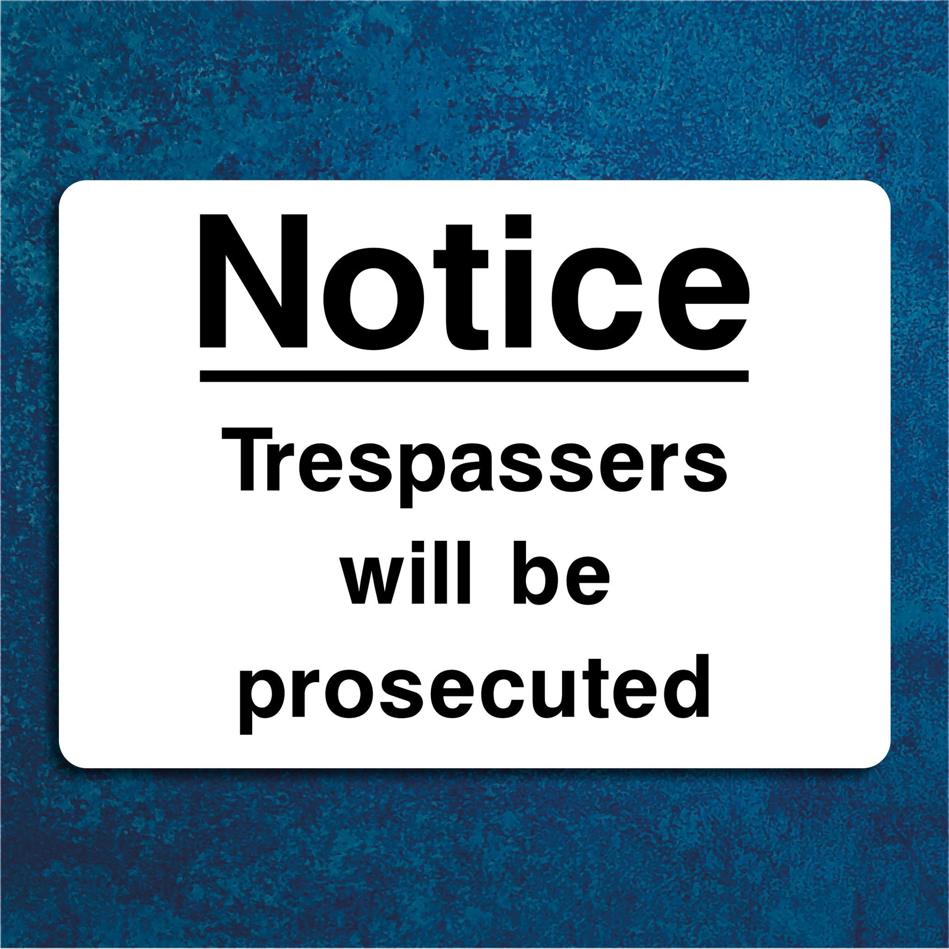 Notice Trespassers Will Be Prosecuted Signs are intended to warn, deter, and inform individuals that unauthorized entry onto the property is illegal and will result in legal action. The signs clearly warn people that entering without permission is not allowed and can have serious consequences. All our safety signs are compliant with BS EN ISO 7010 where applicable.